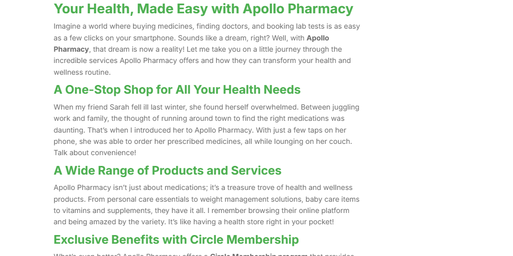 What’s even better? Apollo Pharmacy offers a Circle Membership program that provides exclusive discounts and benefits on your purchases. Sarah signed up and couldn’t believe the savings she was enjoying. It’s a smart way to take control of your health without breaking the bank!